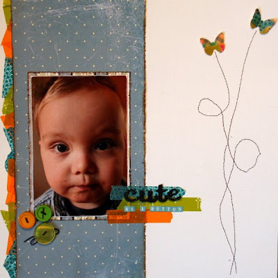 Papirene ser ut til å være BG og Cosmo. Ellers har jeg stemplet, mistet og laget sirklene med dabber. Blomsten av dongeri og blonde har jeg laget selv. De andre er fra Prima.